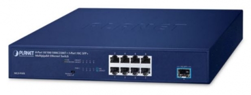 PLANET MGS-910X on 9-porttinen 10/100/1000BaseT Gigabit Ethernet kytkin 10GBit/s uplink SFP+ portilla. Tekniset tiedot: |