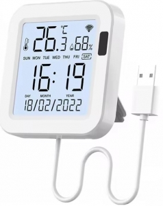 Tuya TUYA-TH-16 on langaton WiFi lämpötila-kosteusanturi LCD-näytöllä (taustavalolla), jonka mittaamaa tietoa saadaanhelposti seurattua Tuya Smart Appsin avulla suoraan matkapuhelimesta. Anturi voidaan liittää lisäksi Google Hometai Amazon Alexa kotiautomaatiojärjestelmiin. Tuotepakkauksen sisältö: Tekniset tiedot: |